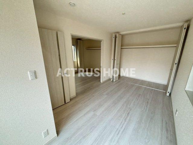 自然光が差し込む居室には、大容量収納を誇るクローゼットを手前と奥2か所に配置。高さを活かした枕棚とハンガーパイプ、可動棚で洋服から季節家電、趣味コレクションまで美しく整理。開閉がスムーズな引き戸式で動線を邪魔せず、クローゼット内に換気窓を備えて湿気対策も万全。通気性を確保する格子扉デザインと、掃除ロボットも通れる床スペースを実現。木目床×ホワイト壁のミニマルテイストはテレワークコーナーや書斎設置にも最適。機能性とデザイン性を兼ね備えた快適空間です。