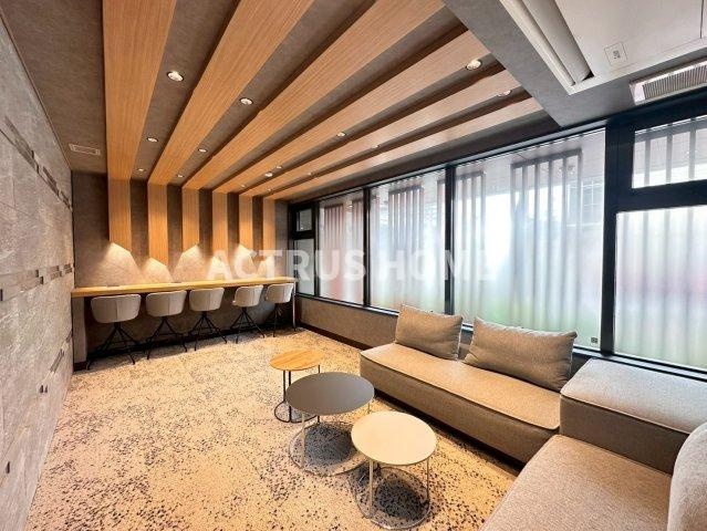 ホテルライクな雰囲気漂うマンションのロビーは、住まいの第一印象を格上げする上質空間。木目天井と間接照明が落ち着いた高級感を演出し、ワークスペースとラウンジがゆるやかに共存。テレワークや読書、来客対応にも使える多機能設計で、賃貸マンションとは思えない快適さ。阿倍野区で設備充実の1DK賃貸を探している方にとって、共用部のデザイン性と使いやすさは大きな魅力。暮らしの質を高めるロビー空間です。