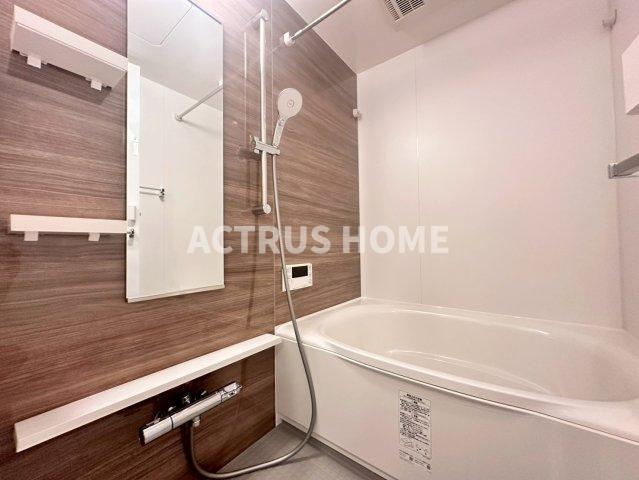 木目調パネルが印象的な浴室は、デザイン性と機能性を兼ね備えた癒し空間。ゆったりサイズのバスタブに加え、高さ調整可能なシャワーヘッドや収納棚付きミラーなど、使い勝手の良さが光ります。清潔感のある白基調の内装は、毎日のバスタイムを快適に演出。阿倍野区で設備充実の1DK賃貸マンションを探している方におすすめの、バスルーム重視派も納得の仕様です。賃貸物件選びで浴室の快適さを重視するなら、ぜひチェックしたいポイントです。