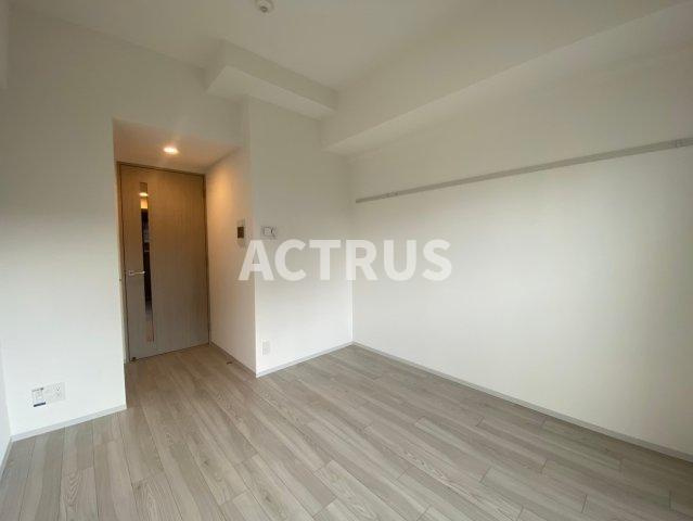 シンプルなホワイトの壁面と明るい木目調フローリングが織りなすワンルーム空間は、クリーンで開放感たっぷり。大きな室内採光で日中も自然光が降り注ぎ、テレワークや趣味の時間も快適に過ごせます。ナチュラルなドアのガラスパネルがアクセントを添え、家具配置もしやすい縦長設計。充実のコンセント配置や壁面スイッチで、家電や照明のレイアウトも自由自在。壁に設置されたマルチコントロールパネルは、エアコン操作や照明調節を直感的に制御可能。天井の下がり天井が空間に奥行きをもたらし、間接照明設置でムードを演出できます。安心の防音仕様で、快眠にも配慮。必見です