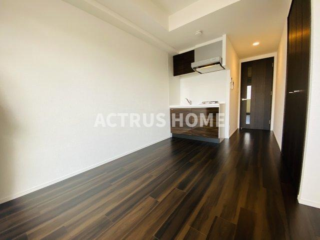 白を基調にした壁とダークウッドの床が織りなす、洗練されたワンルーム。大きな窓から差し込む自然光が空間全体をやさしく包み、バルコニー越しに広がる青空が日常に開放感を添えます。エアコン完備で季節を問わず快適に。キッチンはコンパクトながら機能的で、ステンレスのシンクやレンジフードが清潔感と使いやすさを両立。一人暮らしや在宅ワークにもぴったりな、シンプルで心地よい暮らしが叶う賃貸マンションです。