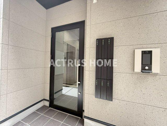 スタイリッシュなガラス扉が印象的なエントランスは、住まいの第一印象をぐっと引き上げてくれます。オートロックとモニター付きインターホンでセキュリティ面も安心。宅配ボックス付きで、不在時の荷物受け取りもスムーズ。タイル張りの床とライトグレーの壁が、上品で落ち着いた雰囲気を演出します。大阪で安心・快適な賃貸物件を探す方にとって、共用部の充実は大きな魅力です。