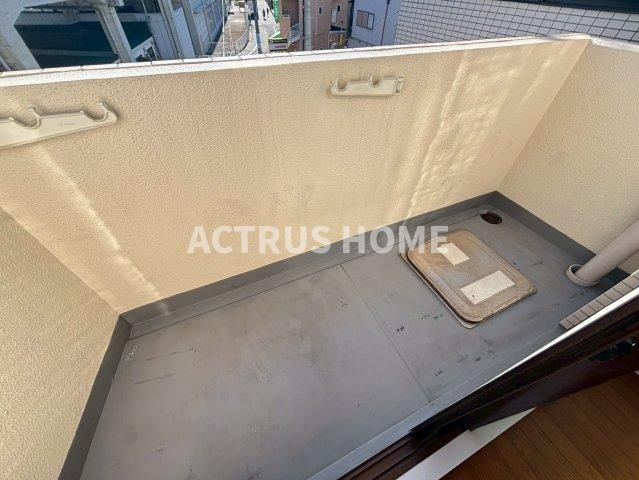 ベージュトーンで統一されたバルコニーは、落ち着いた雰囲気と清潔感が魅力。南向きのため日当たりが良く、洗濯物もよく乾きます。床面はフラットで掃除がしやすく、壁面には物干しフックが設置されており、洗濯動線もスムーズ。排水口や点検口も整備されており、機能性も十分です。賃貸マンションで「南向きバルコニー」「洗濯動線」「屋外スペース」を重視する方におすすめの一室です。