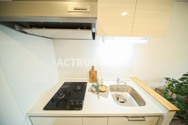 シンプルで機能的なキッチンは、毎日の料理を快適にしてくれる造りが魅力です。コンパクトながらもシンクとコンロの配置がバランス良く、調理スペースをしっかり確保。収納も上下に備わっているため、調理器具や食器をすっきり整理でき、生活感を抑えた空間を演出できます。清潔感あるカラーリングはインテリアとの相性も良く、賃貸マンションを探す方にとって「使いやすさ」と「見た目の美しさ」を両立したポイント。阿倍野区エリアで一人暮らしを始める方に、料理を楽しみながら快適に暮らせるキッチン環境としておすすめできます。