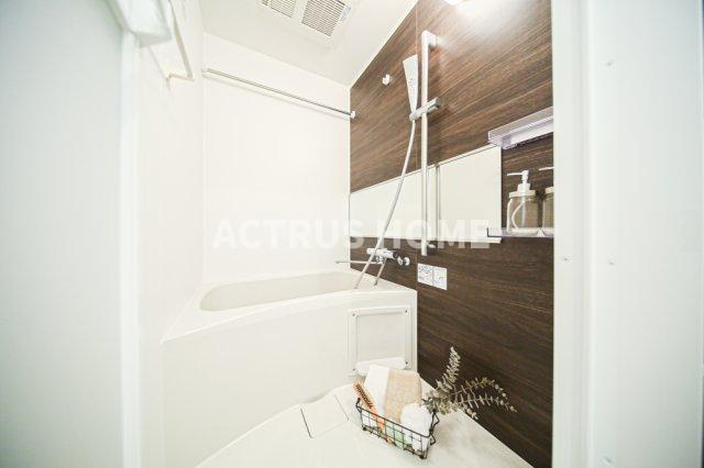 清潔感あふれる浴室は、毎日のリラックスタイムを心地よく演出してくれる空間です。白を基調とした明るいデザインにより、広さ以上の開放感を感じられるのが特徴。浴槽はゆったりとしたサイズで、一人暮らしでもしっかりと疲れを癒せる仕様です。壁面や床の素材はお手入れがしやすく、日常的に清潔を保ちやすい点も魅力。さらに浴室乾燥機の設置があることで、雨の日でも洗濯物を快適に乾かせる利便性を備えています。賃貸マンション選びで重要視される「快適さ」「清潔さ」「機能性」を兼ね備えた浴室は、おすすめポイントです。