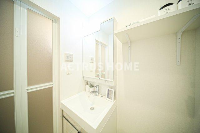 洗面台はシンプルでありながら機能性に優れ、毎日の身支度を快適にサポートしてくれる造りが魅力です。鏡のサイズが十分にあり、朝の準備や夜のスキンケアもスムーズに行える設計。収納スペースが下部に備わっているため、洗面用品や日用品をすっきり整理でき、生活感を抑えた清潔な空間を保てます。水回りは賃貸マンション選びで重要視されるポイントですが、この洗面台は「使いやすさ」「清潔感」「収納力」を兼ね備え、暮らしをより快適にしてくれる設備としておすすめできます。