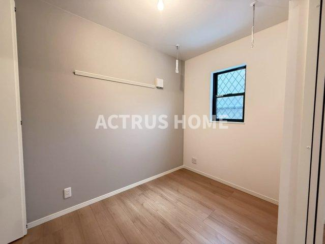 グレーのアクセントクロスが印象的なこの洋室は、シンプルながらも洗練された雰囲気を演出。窓には防犯性の高い格子付きで、安心感もプラス。天井のペンダントライトが空間に柔らかな陰影を与え、インテリア次第でモダンにもナチュラルにも仕上がります。壁面にはハンガーバーも設置されており、収納やディスプレイとして活用可能。「大阪市 賃貸」「1LDK」「防犯性の高い部屋」などの検索ワードにもマッチする、都市型ライフにぴったりな一室です。
