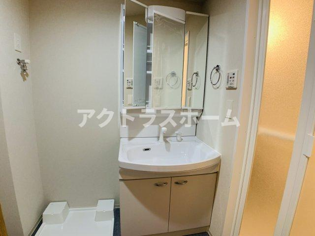洗面台まわりの清潔感と機能性が際立つ一枚。三面鏡付きの収納キャビネットは、日用品の整理に便利で、朝の支度もスムーズ。洗濯機置き場が隣接しているため、家事動線も効率的です。白を基調とした空間は明るく、清潔感を重視する方にぴったり。「阿倍野 賃貸 洗面台独立」「一人暮らし 洗濯機置き場あり」などで検索する方に刺さる、暮らしやすさが詰まった水回りです。